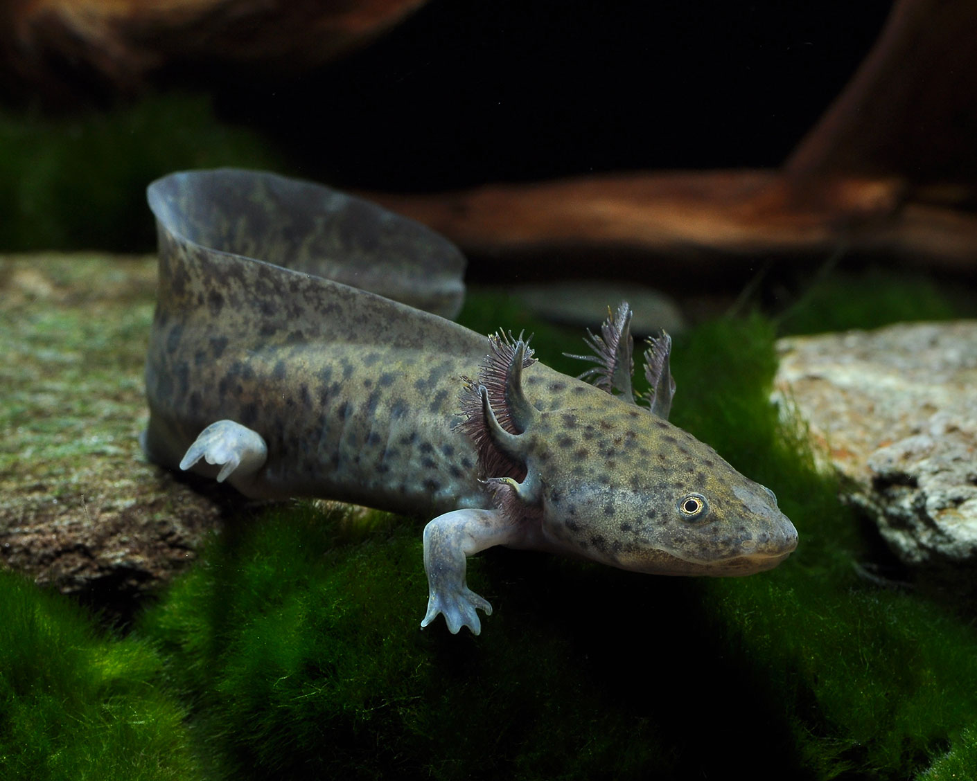 Το axolotl είναι επίσης γνωστό και ως Μεξικάνικη σαλαμάνδρα και είναι μια νεοτενική (παιδομορφική) σαλαμάνδρα. Αν και το axolotl είναι κοινώς γνωστό ως το "ψάρι που περπατάει", δεν πρόκειται για ψάρι, αλλά για αμφίβιο. Το είδος αυτό προερχόταν από πολυάριθμες λίμνες, κοντά στην Πόλη του Μεξικού.Τα αξολότλ ζουν σε στάσιμο νερό στη φύση και στρεσάρονται έντονα από την ροή του φίλτρου, με συμπτώματα όπως ανησυχία, ανορεξία, βράγχια γυρισμένα προς τα μπροστά και γυρισμένη ουρά, για αυτό πρέπει η ροή να μην τα ταράζει, άλλα είναι αναγκαίο να υπάρχει στο ενυδρείο διότι τα αξολότλ παράγουν περισσότερα απόβλητα απ’τα ψάρια.Αντί για τα χαλίκια μπορεί να χρησιμοποιηθεί άμμος ή βότσαλα μεγαλύτερα απ’το κεφάλι του ζώου. ...Περισσότερα