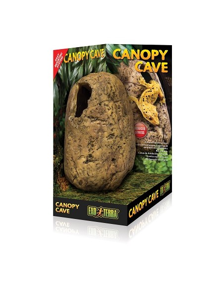 Το σπήλαιο Exo Terra Canopy δημιουργεί ένα περιβάλλον πολλαπλών επιπέδων. Τα ερπετά και τα αμφίβια που δεν κατοικούν δέντρα είναι συχνά απρόθυμα να χρησιμοποιήσουν σπηλιές στο ισόγειο για να κρύψουν ή να φωλιάσουν. Η σωστή περιοχή κρυψίματος είναι βασικό χαρακτηριστικό ενός φυσικού τεράριουμ. Χωρίς ένα ασφαλές σημείο για να κρυφτούν και να κοιμηθούν τα ερπετά και τα αμφίβια θα αναπτύξουν εύκολα άγχος που θα επηρεάσει τη δραστηριότητα και την όρεξή τους. Τα στεγασμένα ερπετά μπορούν να υποχωρήσουν σε αυτό το αυξημένο και ασφαλές κρησφύγετο, βιώνοντας την ευκαιρία να ξανακερδίσουν τη δύναμή τους. ...Περισσότερα
