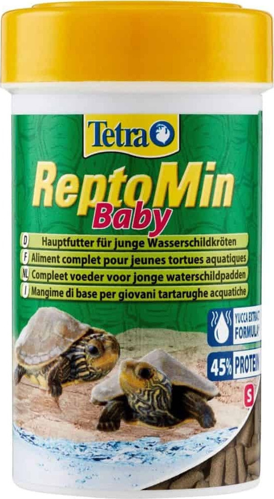 Tetra ReptoMin Baby is a complete food specially designed for small aquatic turtles. It is in the form of floating sticks with a smaller and softer shape than regular ReptoMin, making it easier for young animals to swallow.